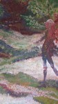 2012Een vrouw is op weg langs de stroom. Ze gaat stroomopwaarts.